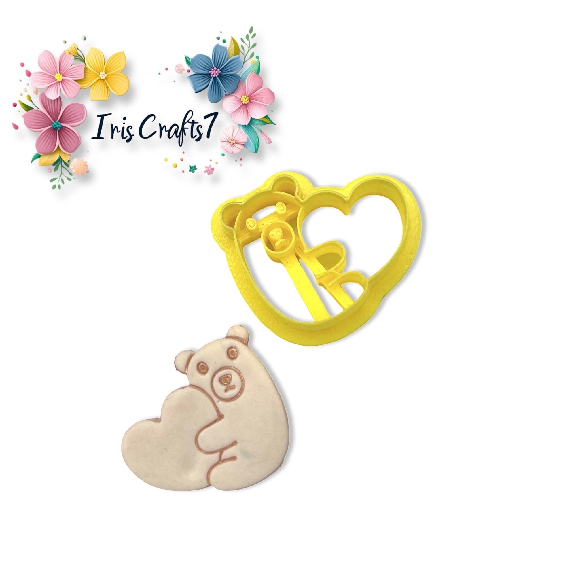 Create adorable teddy bear hug heart shapes on polymer clay with this cutter.