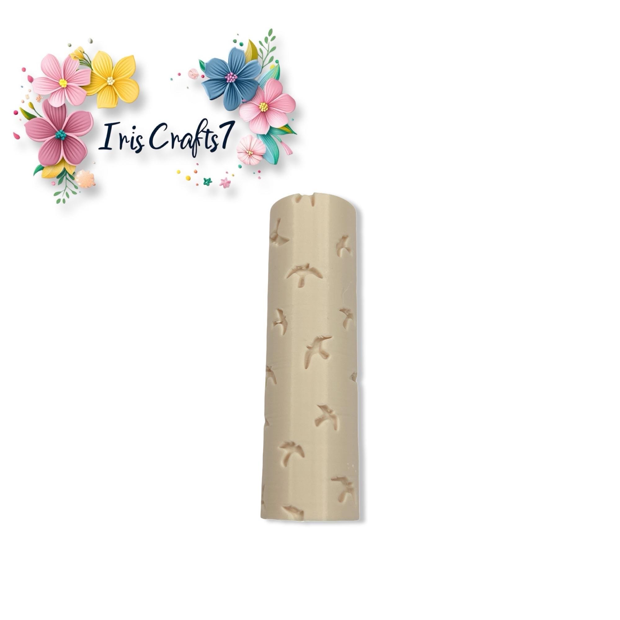Birds texture roller, perfect for adding delicate bird patterns to polymer clay earrings and handmade jewelry.