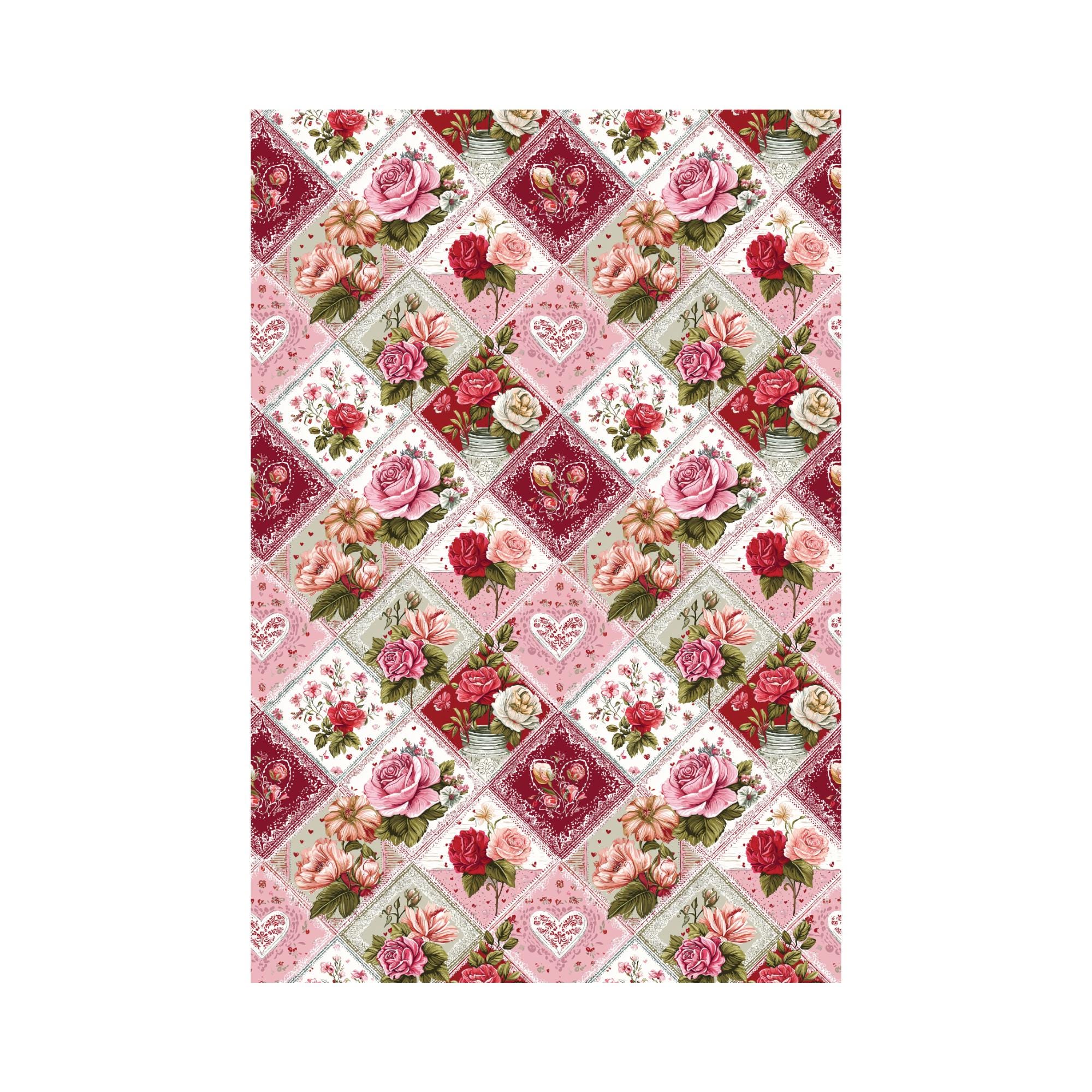 Valentine Patchwork No.1 water-soluble transfer paper, perfect for adding mixed heart and patchwork patterns to polymer clay earrings.