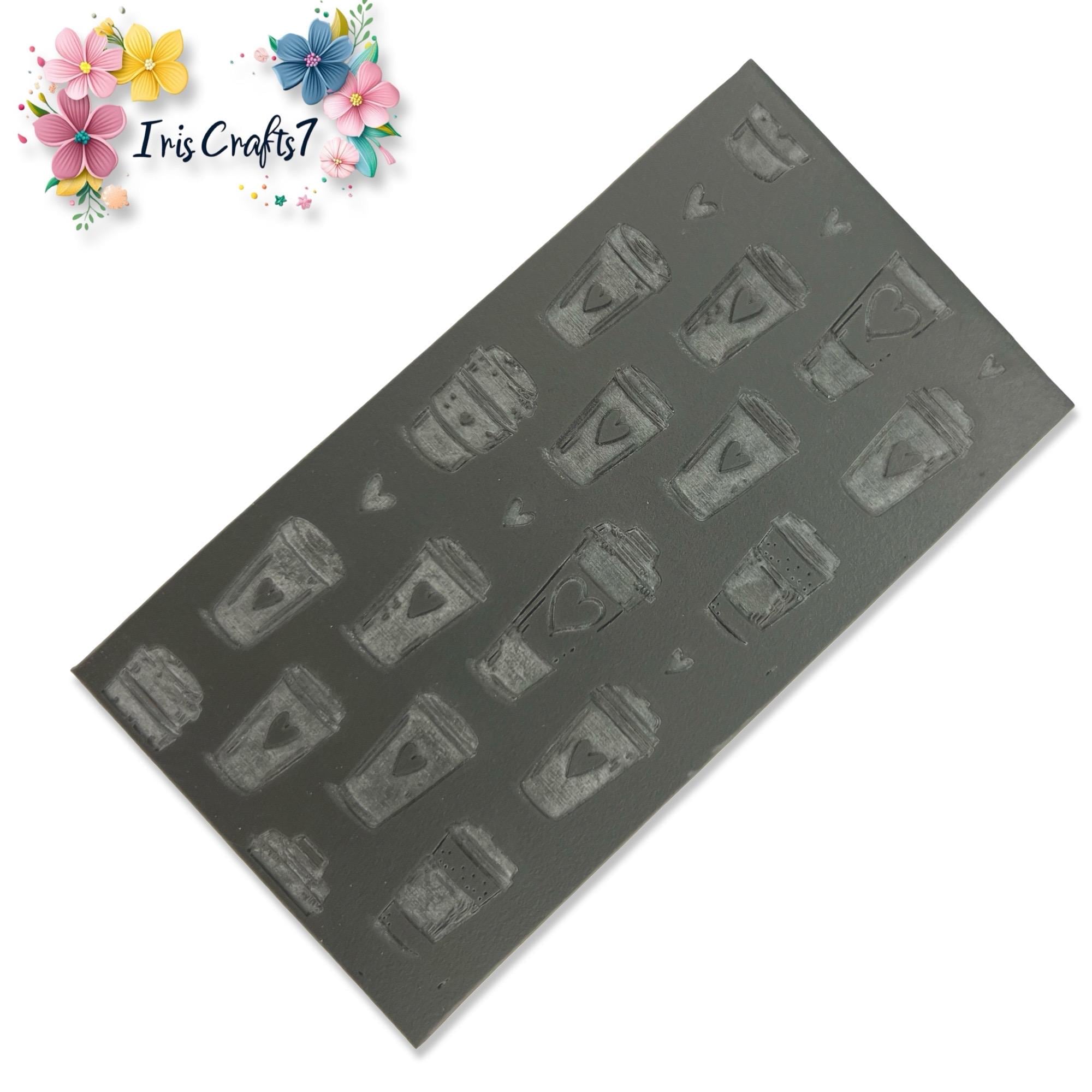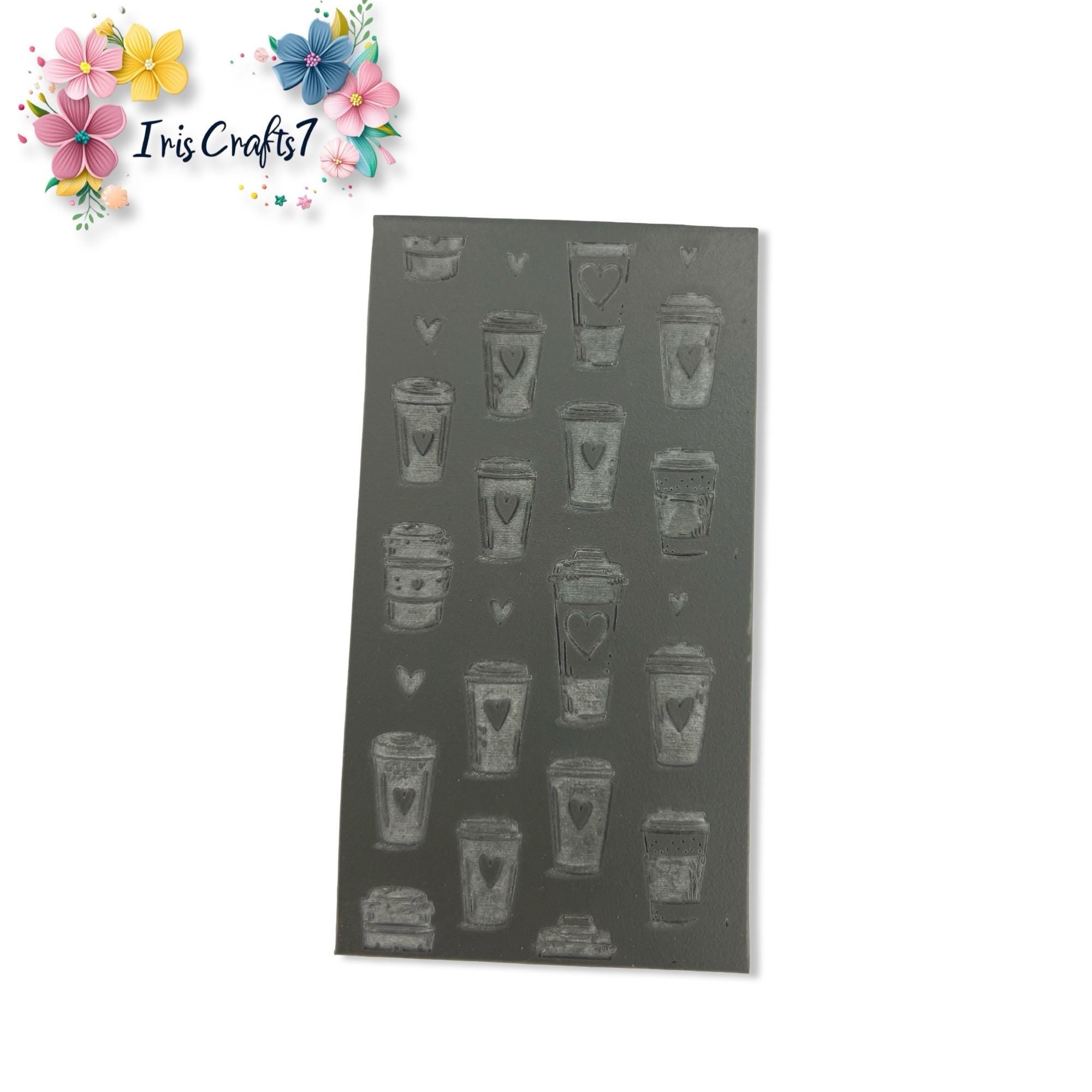 Durable rubber sheet with clean embossed detail, ideal for texturing, embossing, and patterned clay designs. This Coffee Cup Rubber Texture Mat Polymer Clay Embossing Sheet is designed to create clean, detailed impressions on polymer clay, ceramics, air-dry clay, fondant, and other craft materials. The design transfers smoothly onto the surface of the clay, giving your work a professional embossed or engraved look without needing special tools or advanced techniques. Ideal for jewelry makers, mixed media artists, and small business creators, this mat provides consistent, sharp texture with every use.
