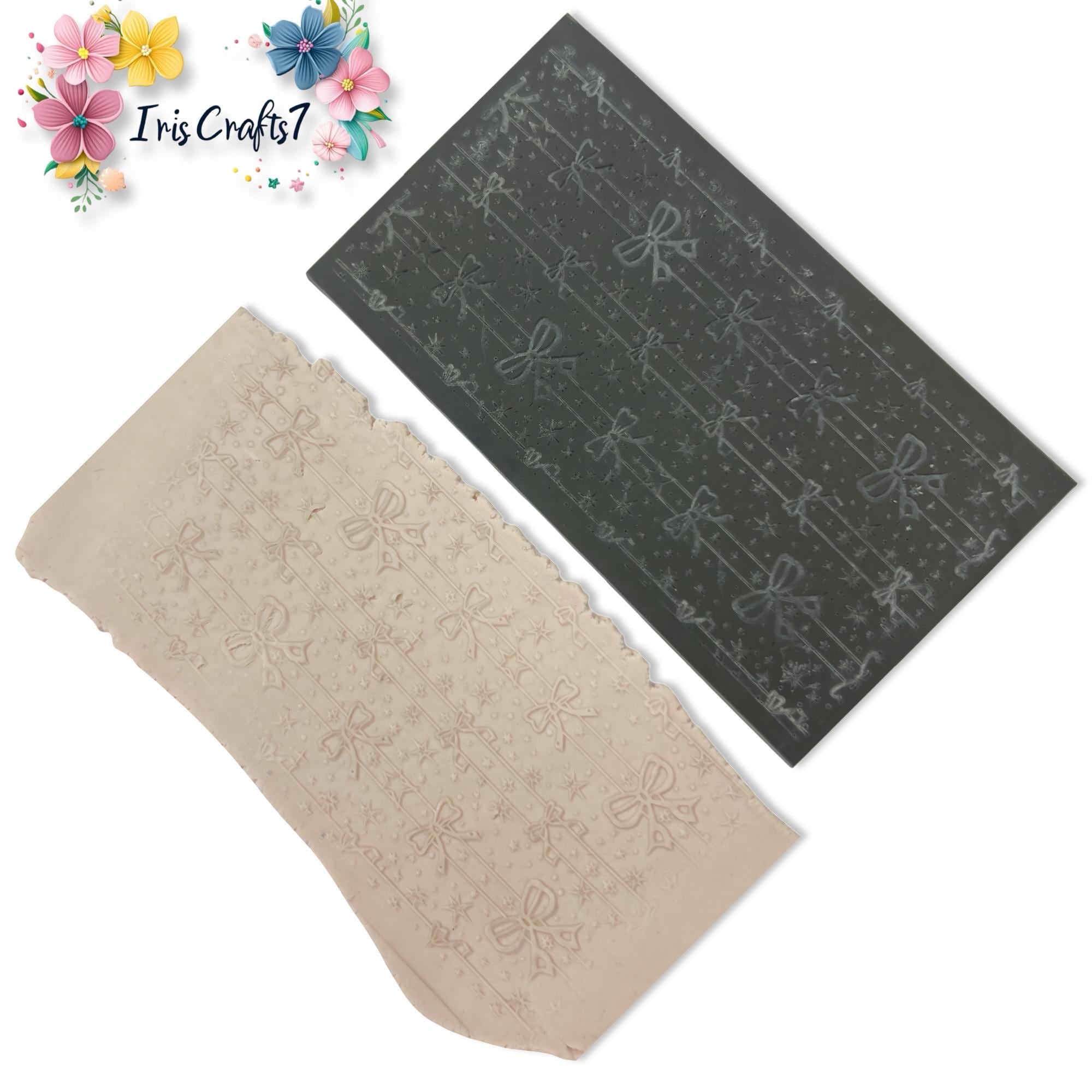 Durable rubber sheet with crisp detail, ideal for texturing, embossing, and decorative clay jewelry designs. This Bows and Stripes Rubber Texture Mat Polymer Clay Embossing Sheet is designed to create clean, detailed impressions on polymer clay, ceramics, air-dry clay, fondant, and other craft materials. The design transfers smoothly onto the surface of the clay, giving your work a professional embossed or engraved look without needing special tools or advanced techniques. Ideal for jewelry makers, mixed media artists, and small business creators, this mat provides consistent, sharp texture with every use.