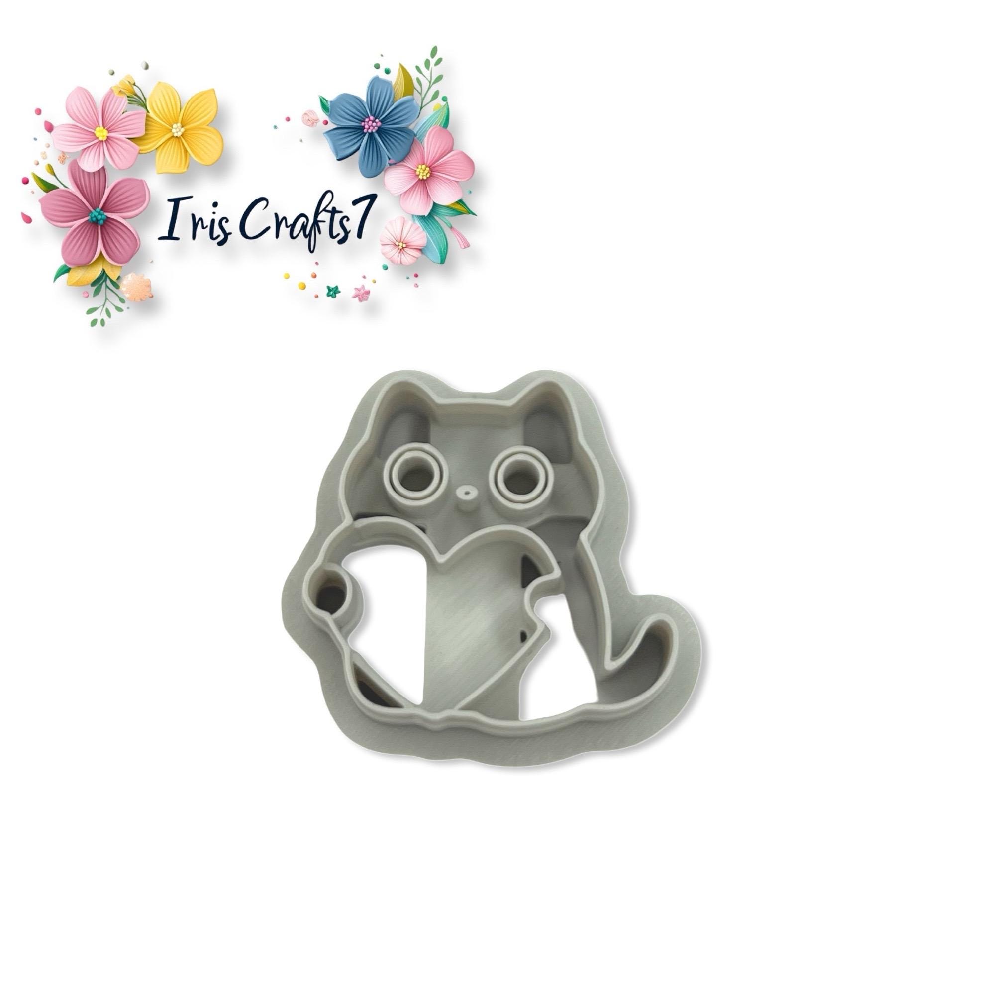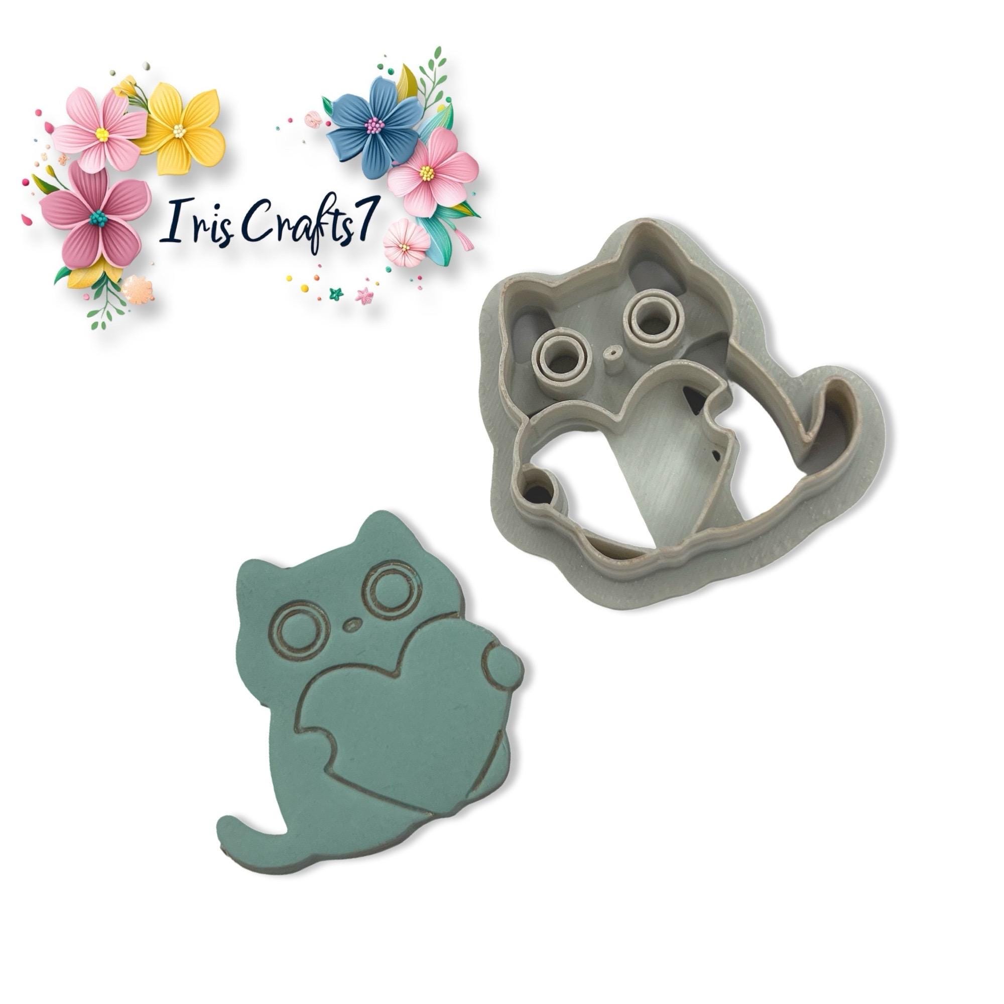 Cat with heart No 2 polymer clay cutter, perfect for Valentine earrings and cute handmade jewelry designs.
