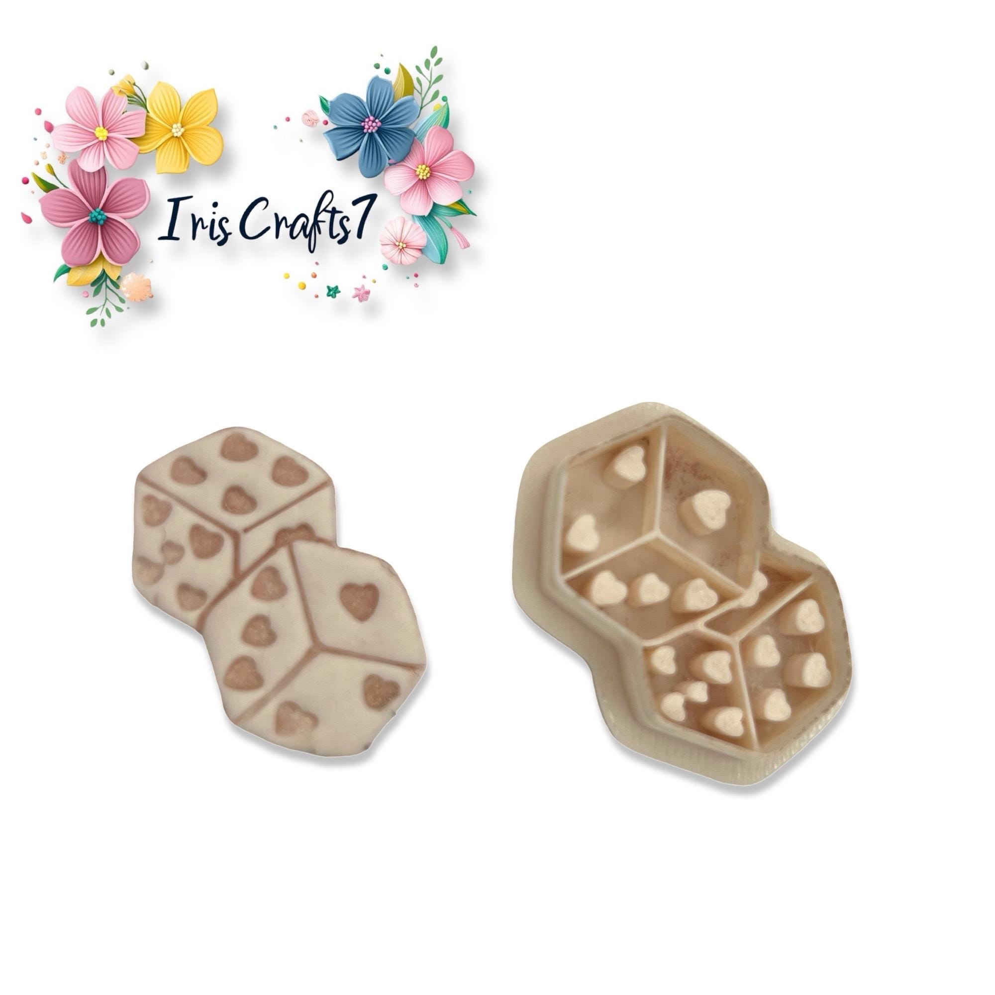 Valentine double dice polymer clay cutter, perfect for playful earrings and unique handmade jewelry designs.