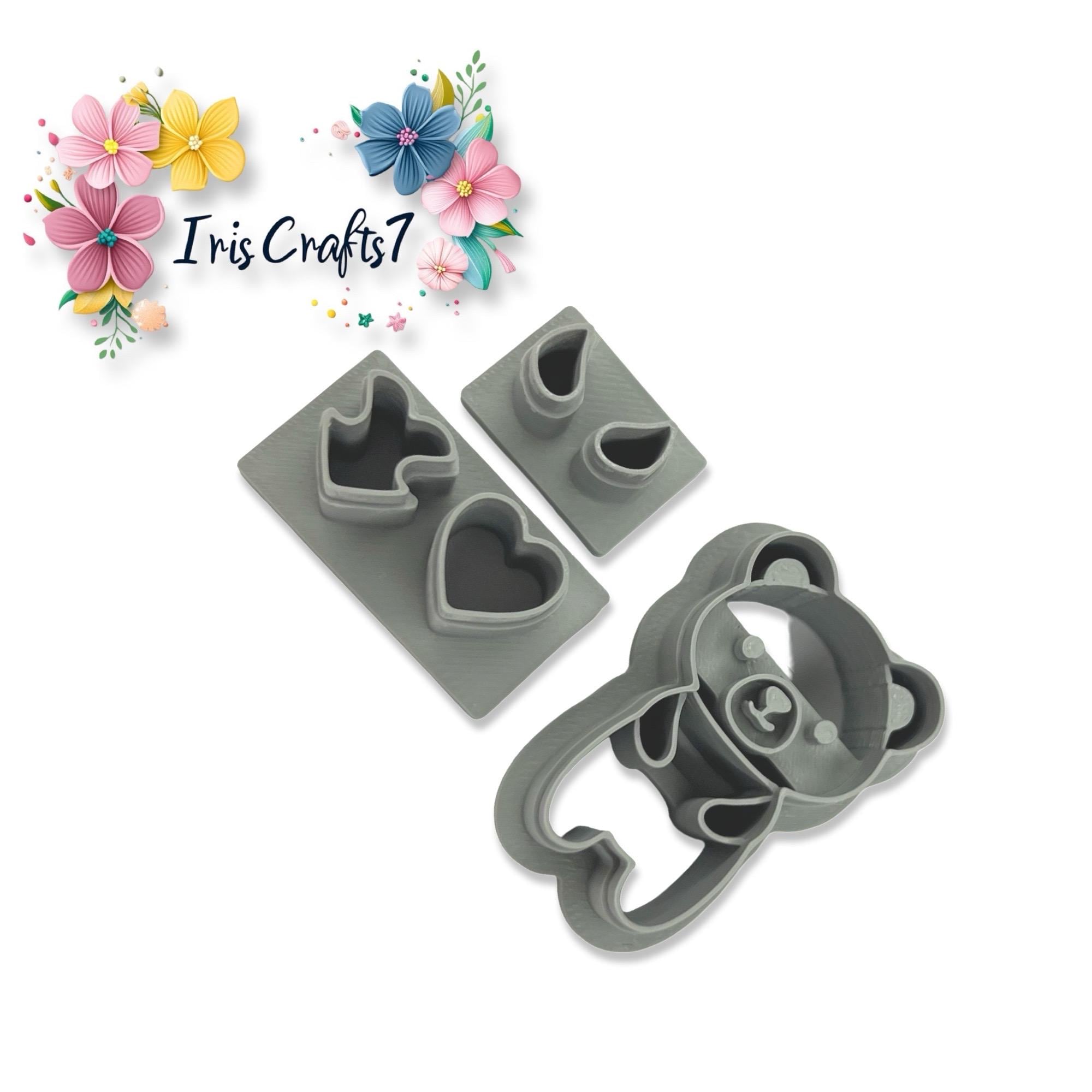 Love Bear polymer clay cutter set, perfect for cute Valentine earrings and romantic handmade jewelry designs.