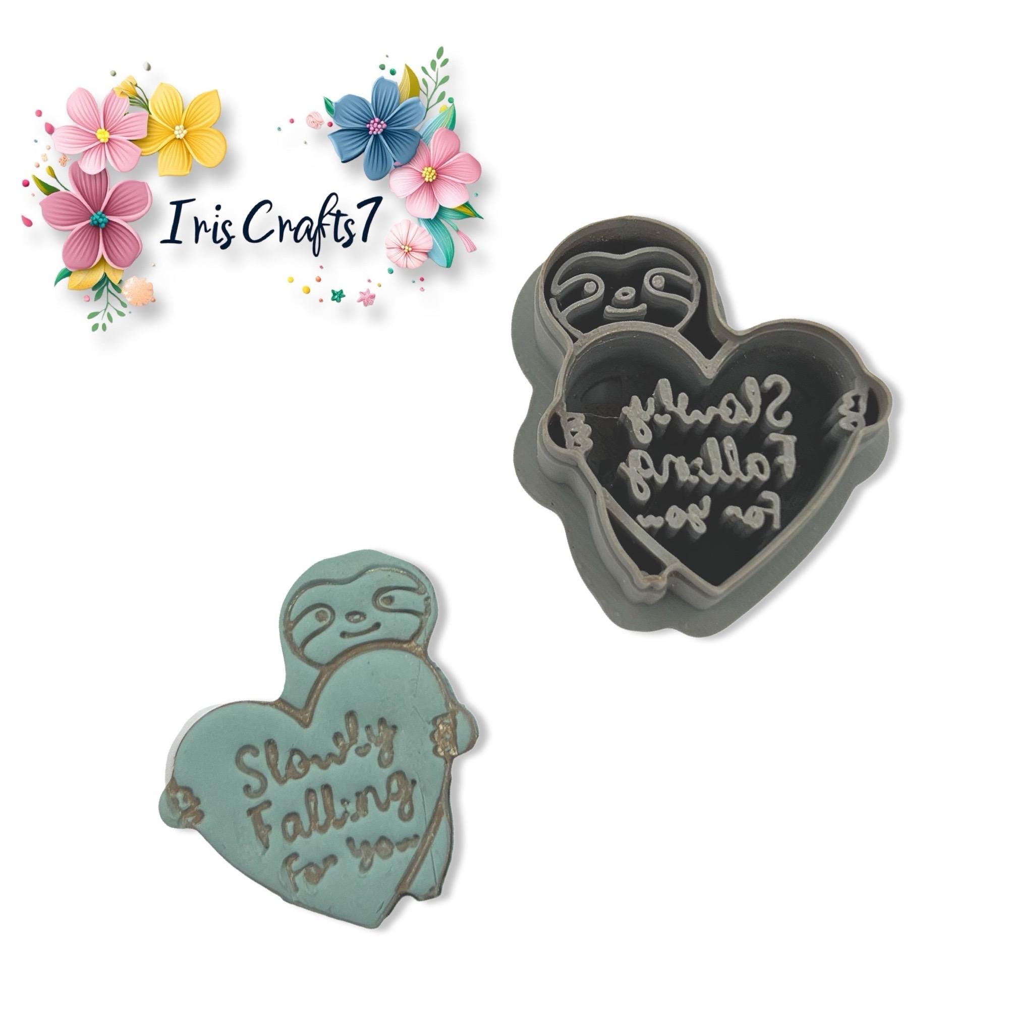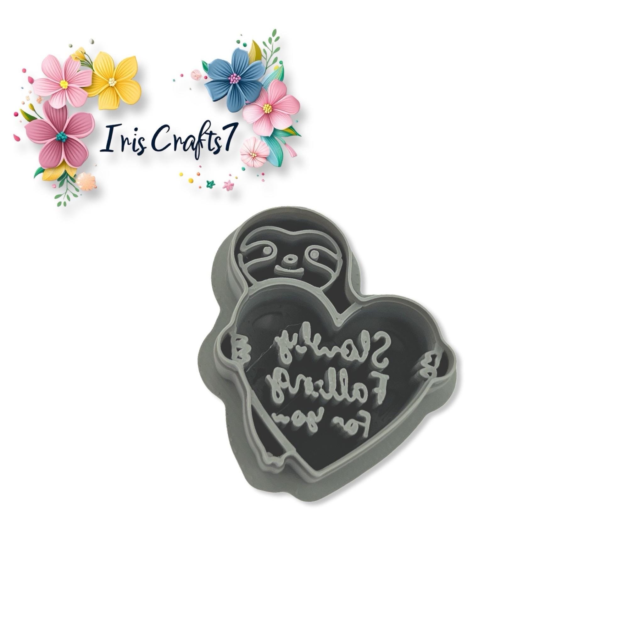 Polymer clay cutter designed for Valentine sloth earrings with a cute heart message detail.