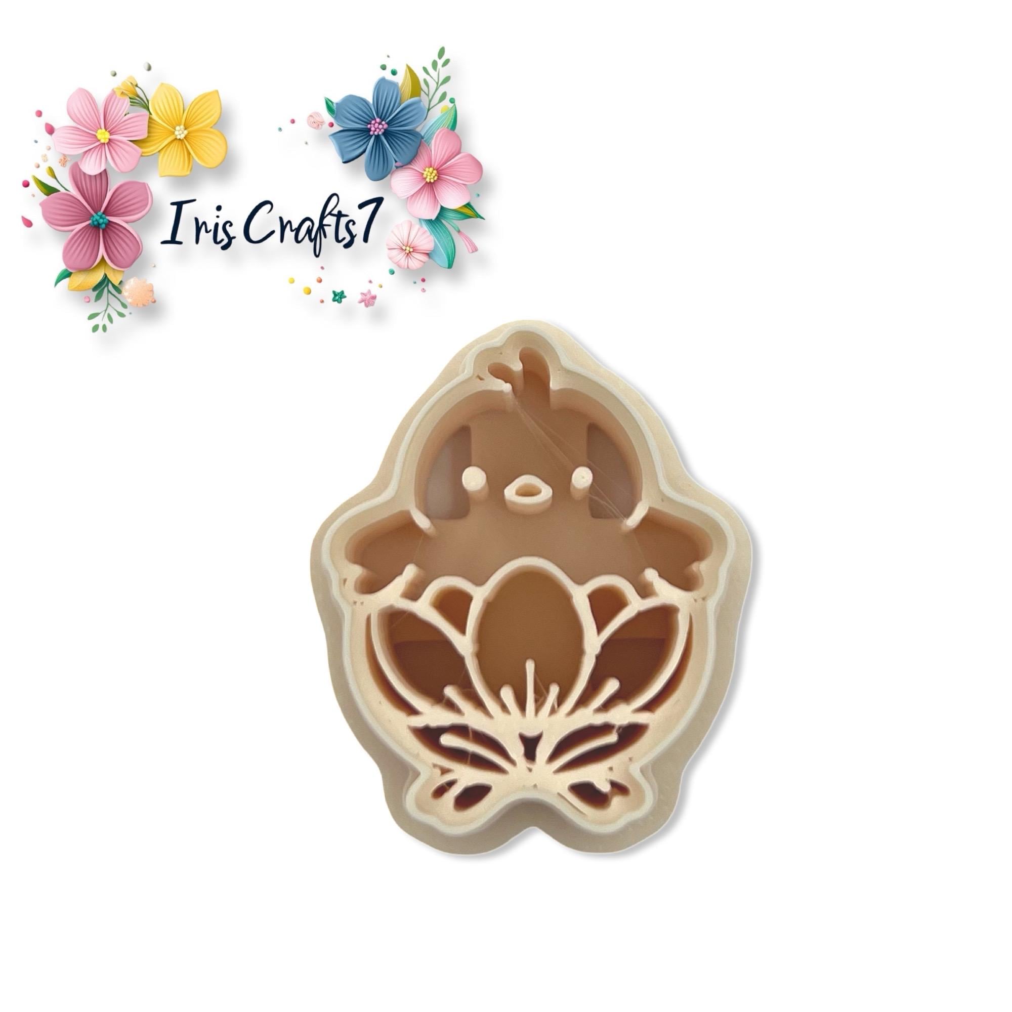 Chick in a flower polymer clay cutter for Easter earrings and polymer clay jewelry making, designed for clean cuts and precise shaping.