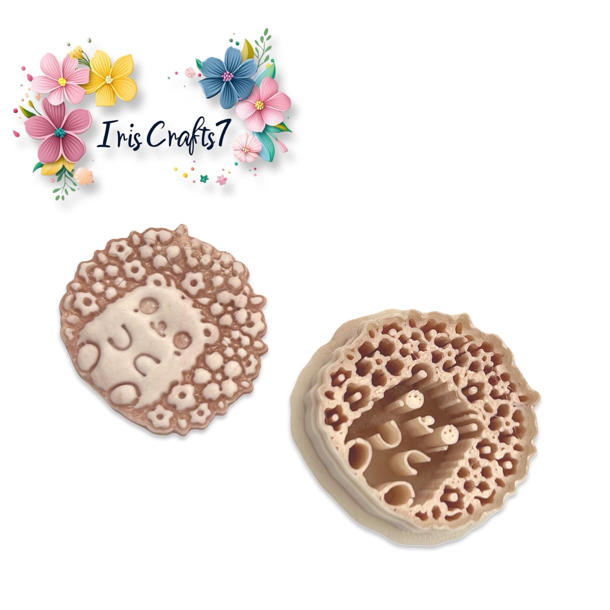 Polymer clay cutter designed for hedgehog earrings with floral details and clean cuts.